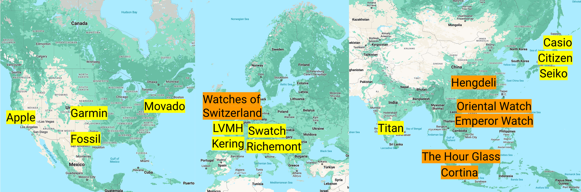In the United States, you have several tech-focused watchmakers, including Apple, Garmin and Fossil. In Japan, Casio, Citizen and Seiko tend to be more focused on quartz watches, but Seiko, in particular, is also moving into higher-end mechanical wrist-watches. India’s Titan produces watches primarily for the local market.