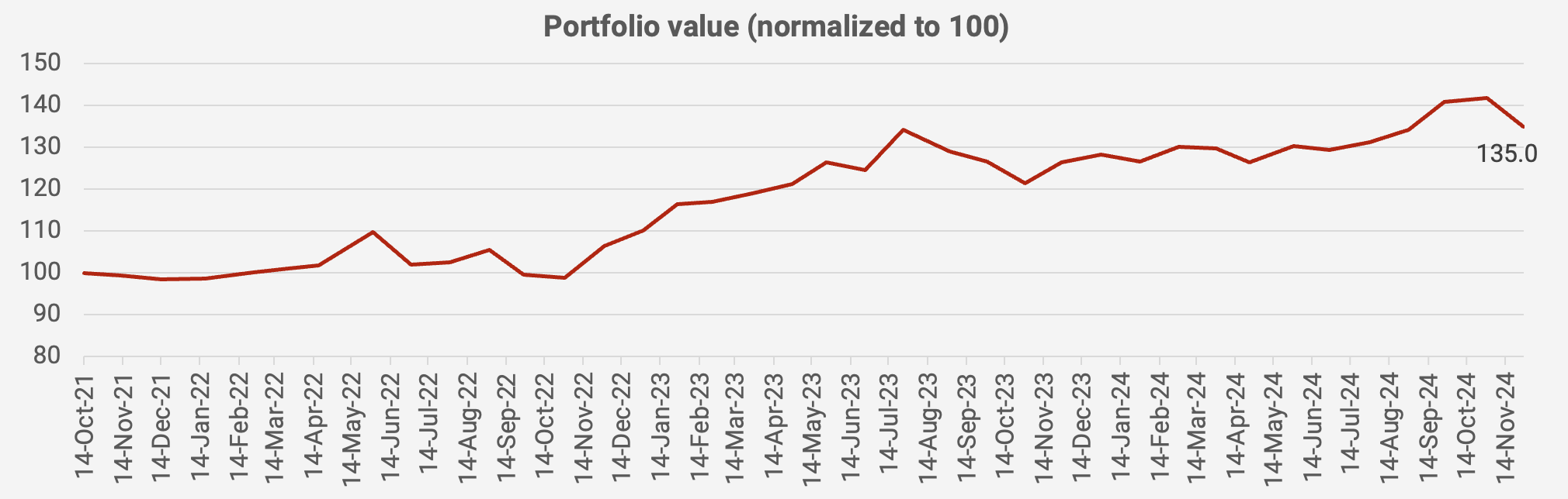 What a month. The portfolio dropped -4.8% in November. Probably the worst month that I can remember since starting to track it in October 2021. The value of the portfolio is now up +35.0% since October 2021, equivalent to a +10.1% compound annual growth rate:
