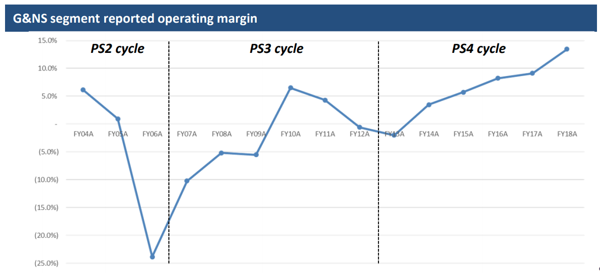 Given that 17% of games sold are first-party games, the transition to digital games brings in an extra US$7 in gross profit per game. This is equivalent to JPY 220 billion assuming 300 million games sold per year.