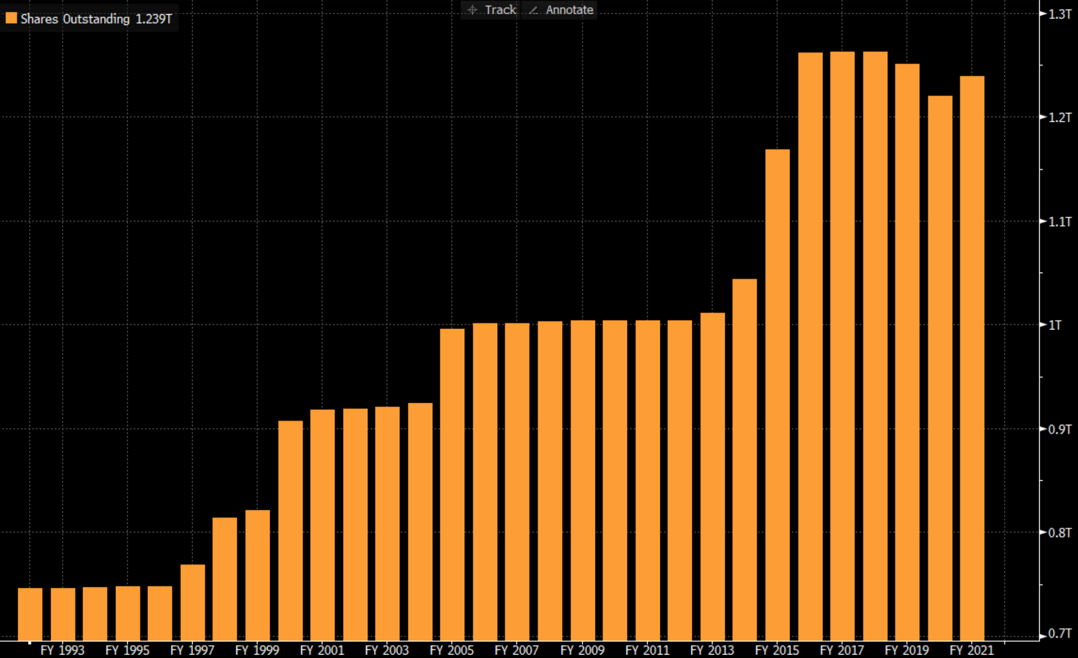 Sony’s shares outstanding has almost doubled since the 1990s, despite flat revenues. In 2015, the company raised JPY 350 billion in an equity raise, even though the company had a net cash position.