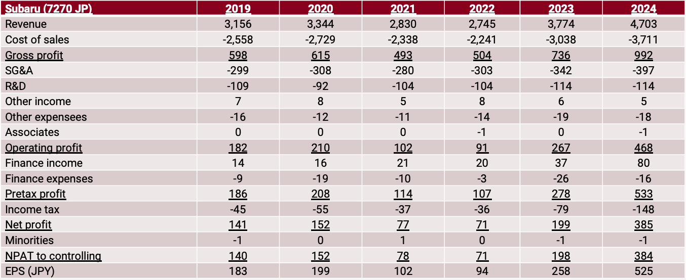 I wrote my first deep-dive on Japanese automaker Subaru Corporation (7270 JP - US$12 billion) in May 2022. Here’s a link to the deck I wrote at the time: