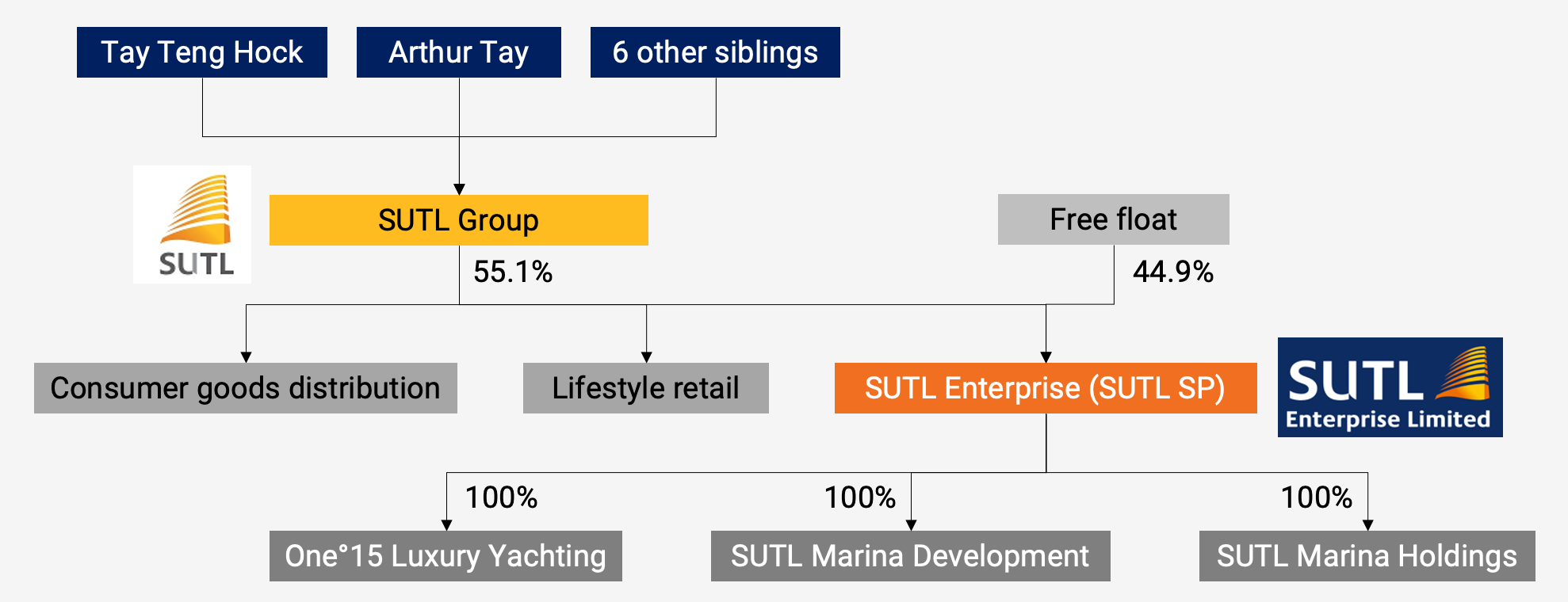 The company is the marina subsidiary of the unlisted conglomerate SUTL Group, which is known locally as a consumer goods distributor and retailer. Here's what the corporate structure looks like.