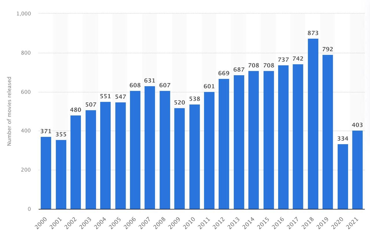 - Bloomberg Intelligence estimates 100 wide releases in the United States vs 76 last year and 120 in 2019. That would suggest box office revenue growth of over 30%.