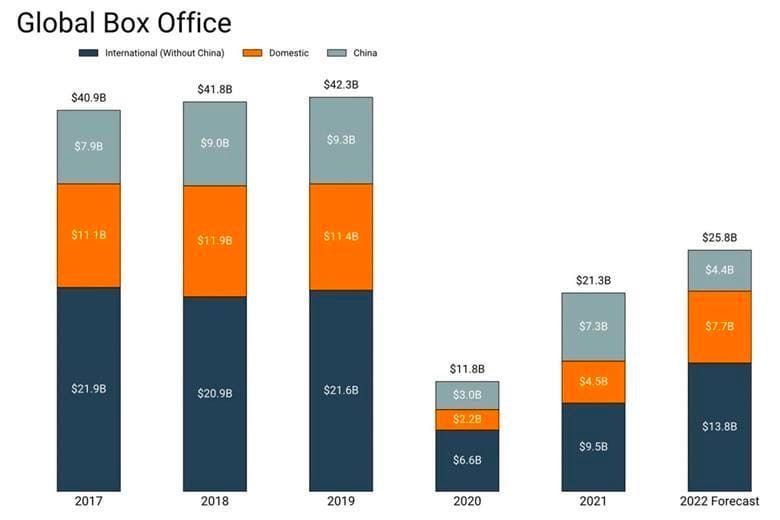 - Now that the release pipeline looks strong again, cinemas will be on a path to recovery. I doubt that the global box office will reach the 2019 level this year, but it will get closer to that number.