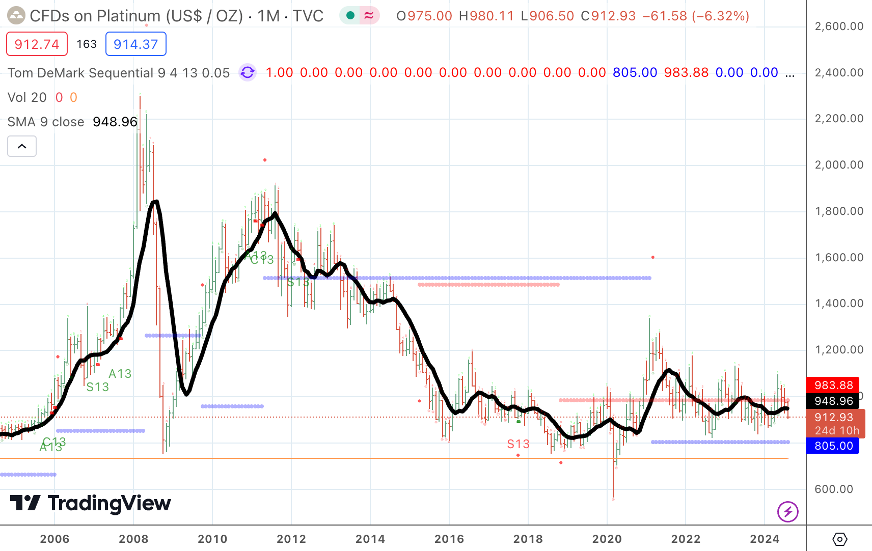 For now, platinum prices remain rangebound, as they have been since 2016: