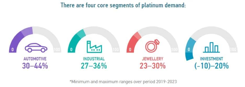 So, we know that the demand for palladium and rhodium is likely to stay flat or slightly higher in the next ten years thanks to tighter emission standards and the increased popularity of hybrids, including plug-in hybrids. But platinum is special among the PGMs, because 60% of its demand comes from non-catalytic converter sources.