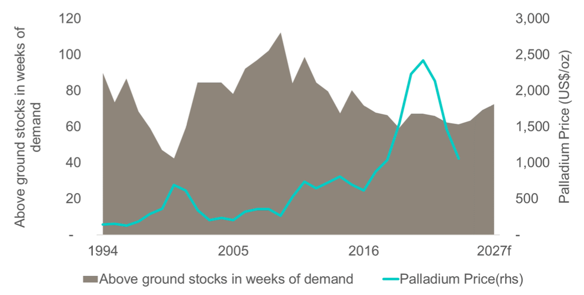 We already saw that potential impact on palladium prices from Russian supply disruptions after the war in Ukraine, when palladium prices went up 5x before falling back to earth.