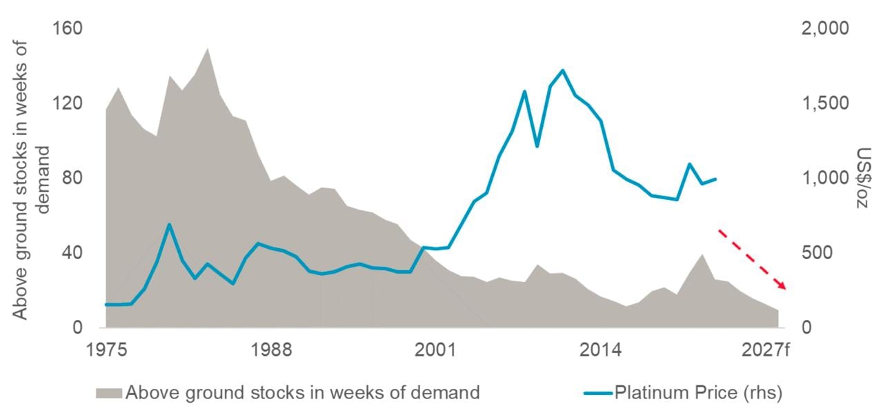 Due to a lack of new supply, PGM inventories are likely to tighten further. The World Platinum Council expects that platinum demand will outstrip supply by 6% this year, and that these shortages will persist through 2028.