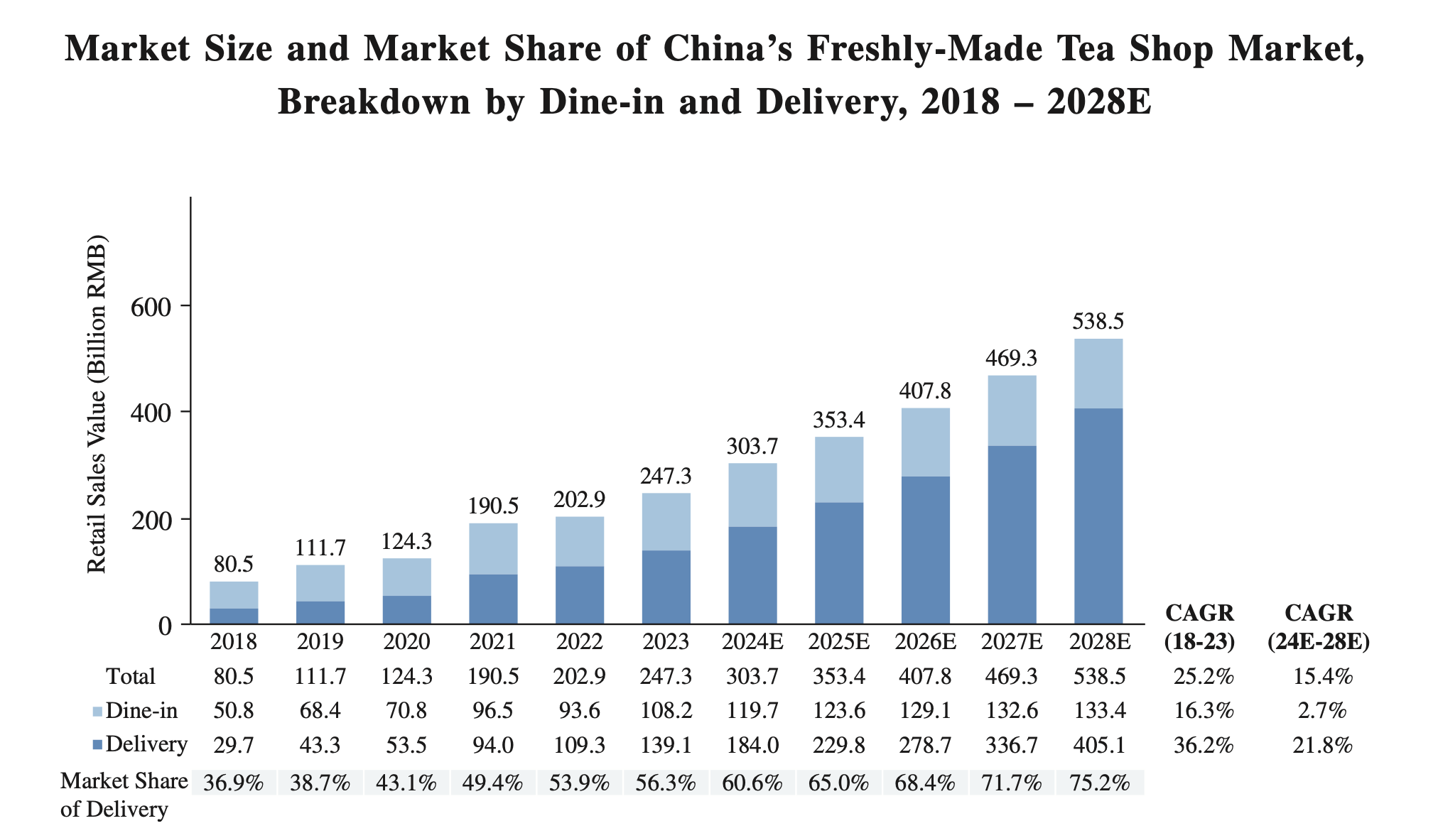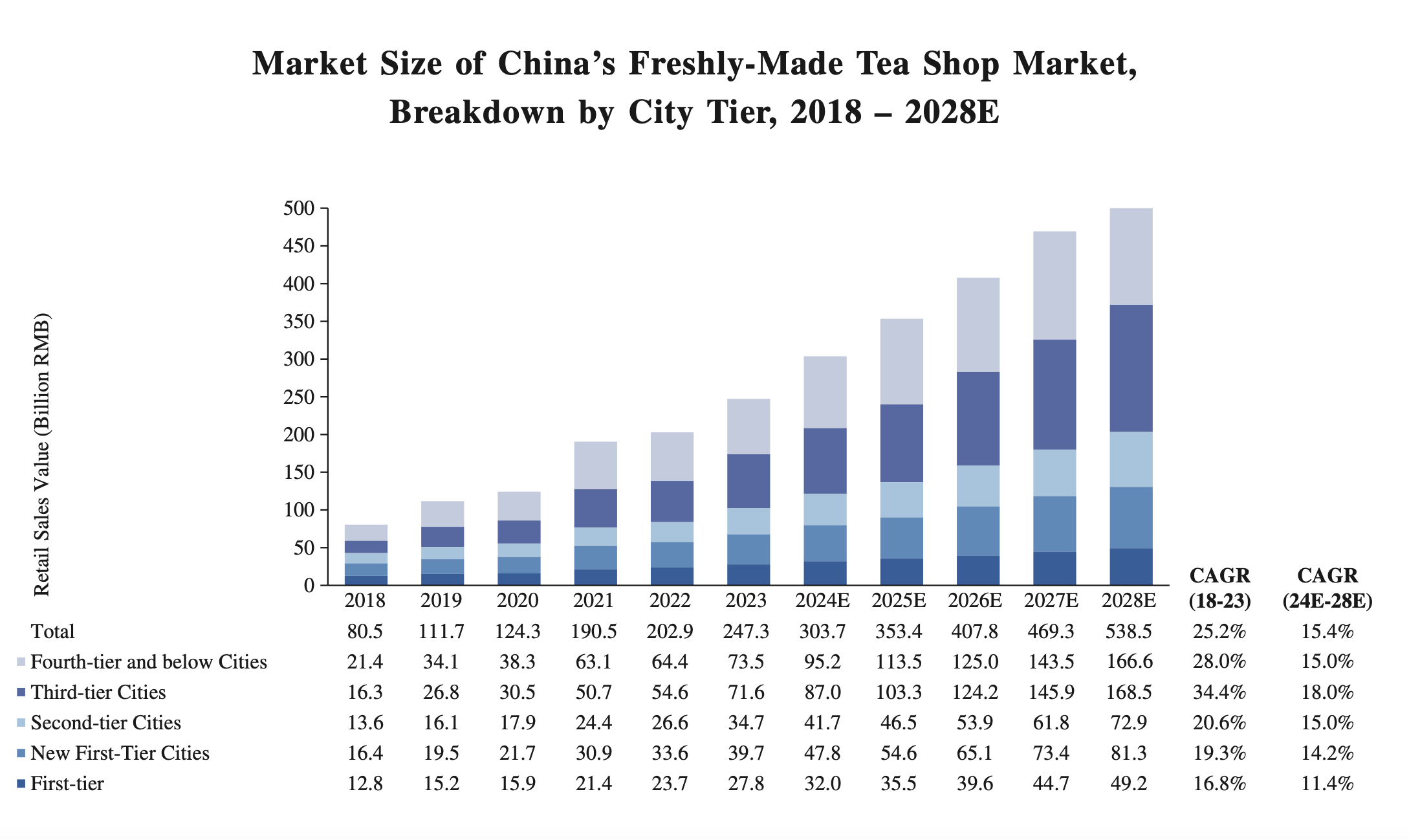 By 2020, mid-end tea shops dominated the market, accounting for 49% of total consumption, while low-end tea shops accounted for 32% and premium modern teahouses captured 19%.