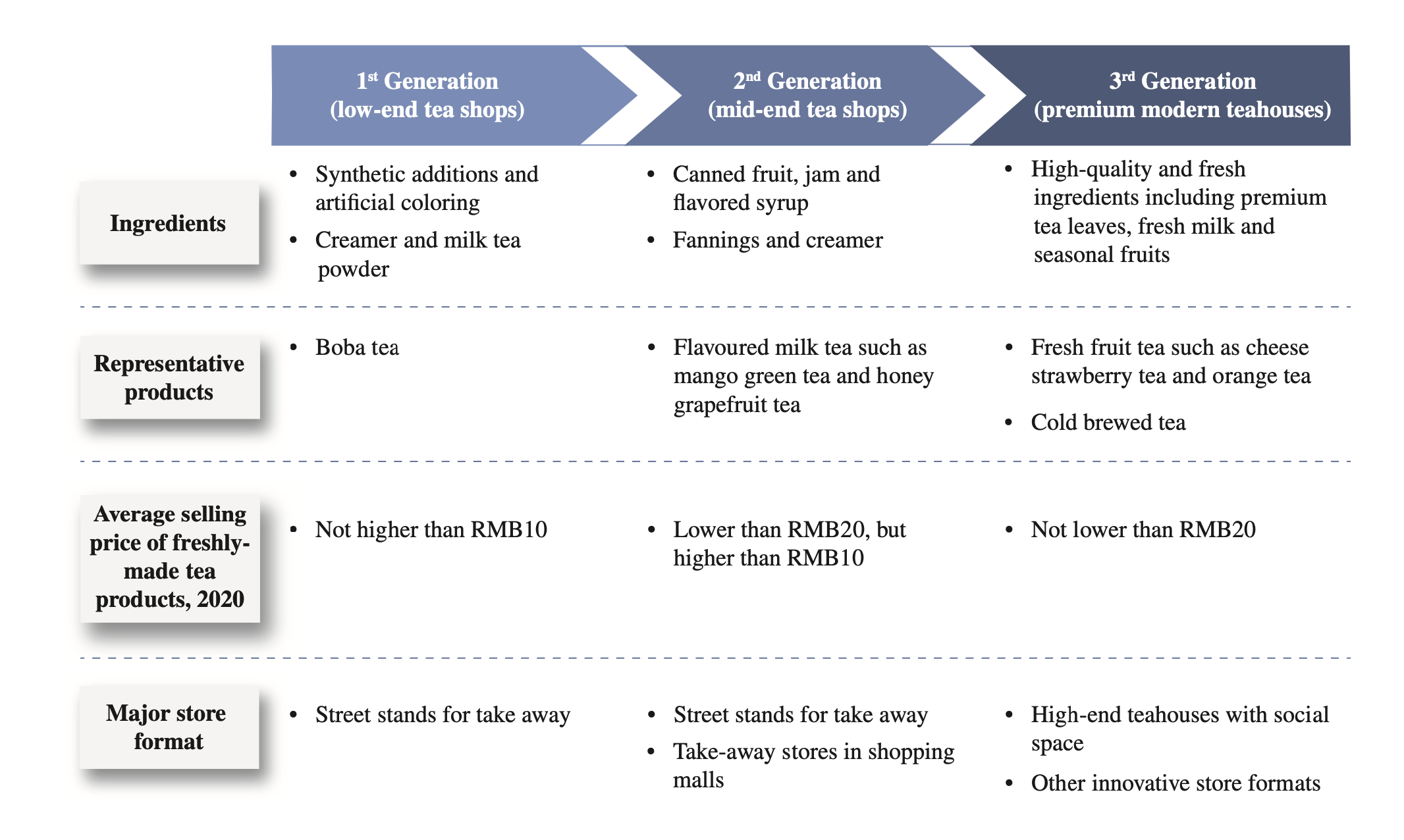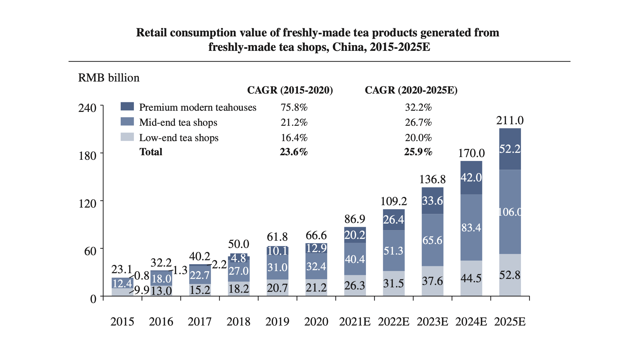 Premium modern teahouses, representing the third generation of tea shops, have experienced remarkable growth, outperforming other tea shop categories with an impressive CAGR of +76% from 2015 to 2020.