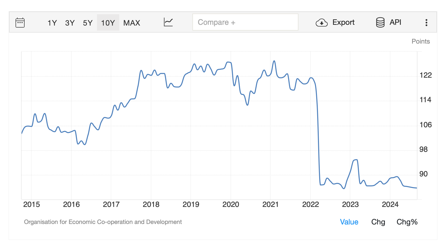 This weakness in Chinese consumption can also be measured through consumer confidence indices. According to McKinsey, consumer confidence is at an all-time low, though higher in China’s poorer cities.
