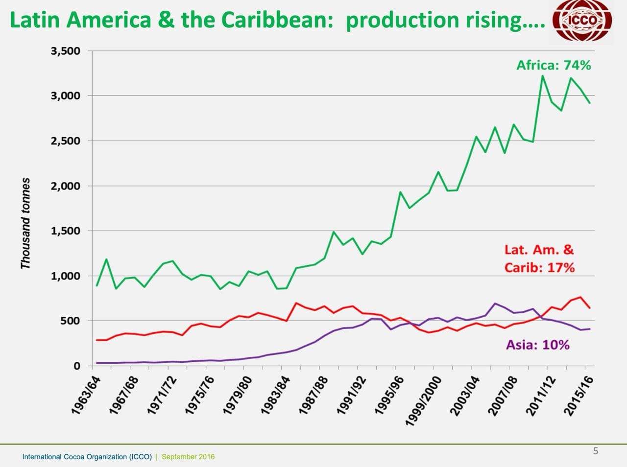 The broad picture is that cocoa bean production tends to meet demand in most years with only a few dislocations historically.
