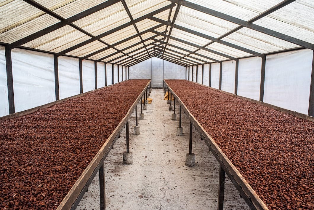 - Farmers harvest cocoa beans from pods on cacao plants, then ferment and dry them before selling them to intermediaries.