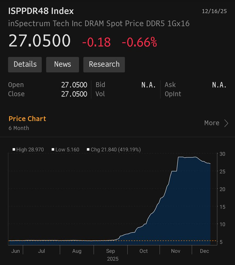 I will admit that in the short run, there is no sign of an imminent peak in profitability. The inventories of High Bandwidth Memory chips used in AI data centers remain ultra-low. The volume-weighted DXI Memory Index has yet to peak. And DRAM contract prices have yet to decline.