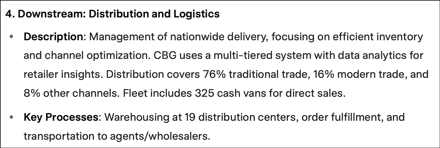 To understand where Carabao sits in the energy drinks supply chain, I now ask these tools to help create a picture of the supply chain. Here's the prompt I use: