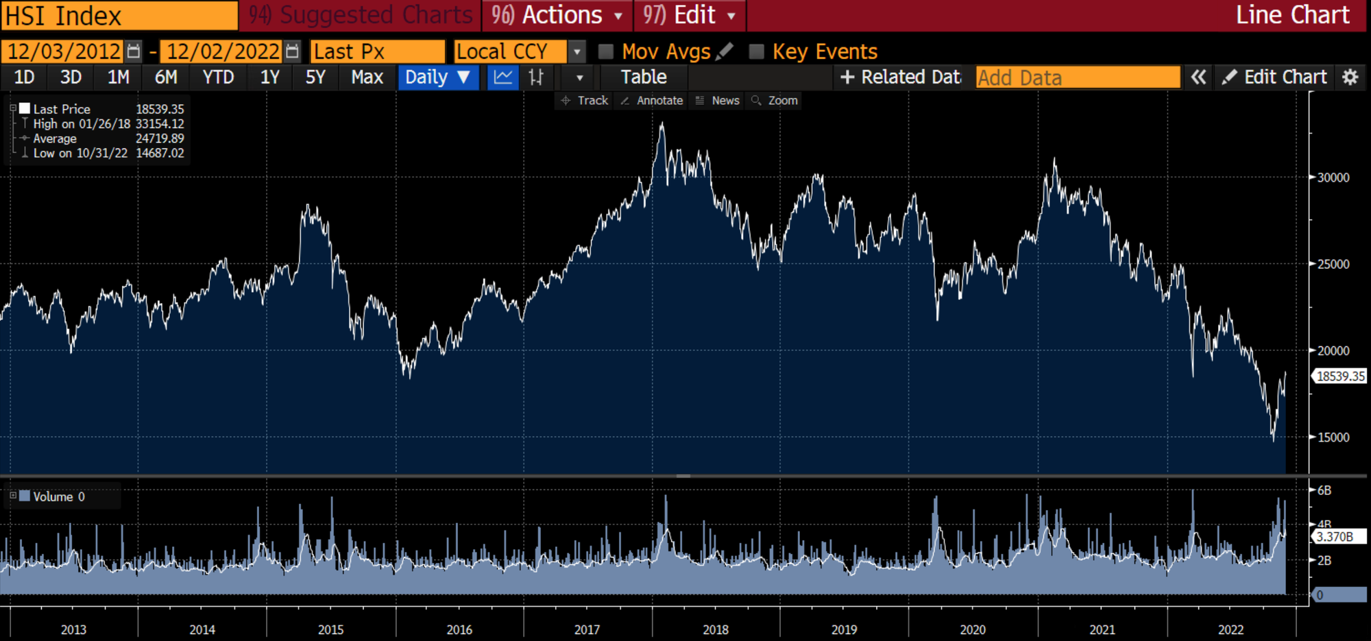“The Chinese government on November 11 released a circular on further optimizing the COVID-19 response measures. We think the impact of COVID-19 on the economy is likely to diminish in 2023, but how fast it will diminish is uncertain, so scenario analysis is required… looking forward, while we believe the worst is probably behind us, the path could still be volatile given the uncertainties in COVID-19 conditions. A more sustainable rally relies on more catalysts, especially on domestic growth.” - CICC