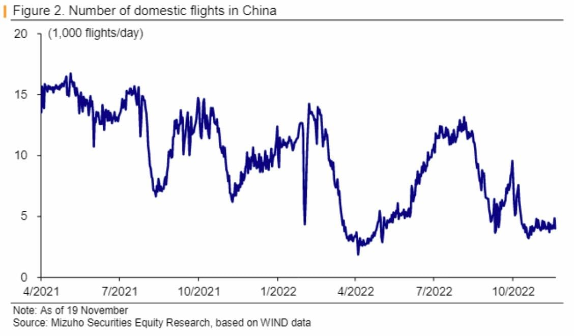 “We think that between now and April is a likely transition for the general public to adapt to the new norm. While China’s international flights have risen since May albeit off low base, domestic flights have stalled, highlighting general caution still in the current transition.” - JP Morgan